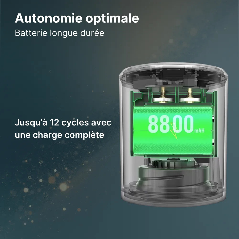 Compact, rapide et autonome (jusqu'à 12 biberons par charge), il maintient l'eau à température jusqu'à 12h pour des repas sereins, n'importe où, n'importe quand.