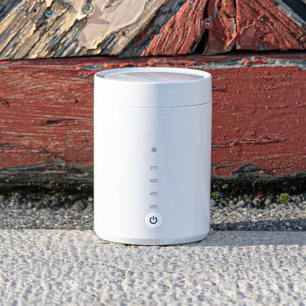 Le chauffe-biberon nomade qui élimine les galères de préparation. Vissez votre biberon directement dessus, chauffez, c'est prêt. Pas de transvasement, pas de complications. Compact, rapide et autonome, il maintient l'eau à température jusqu'à 12h pour des repas sereins, n'importe où, n'importe quand.